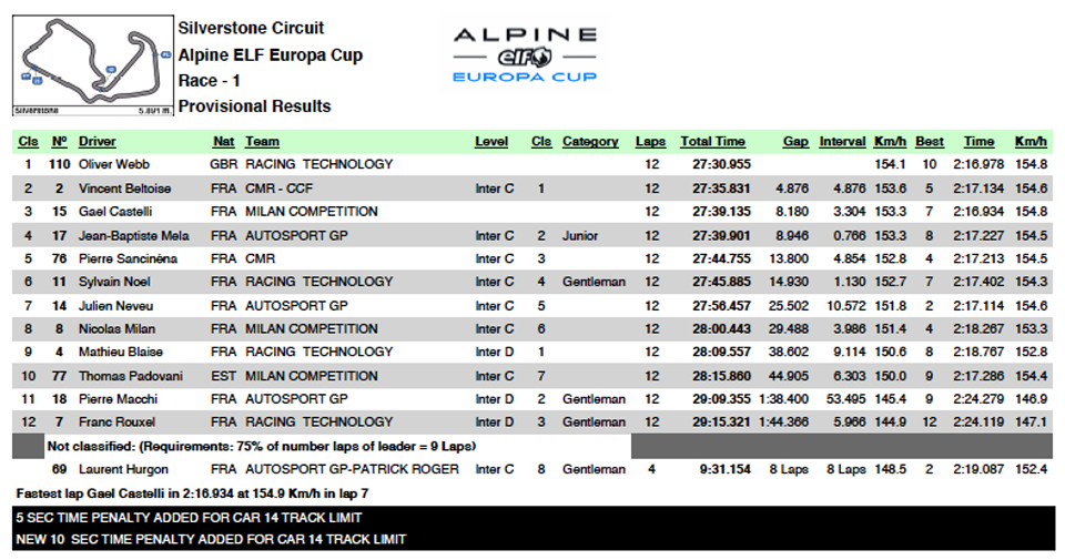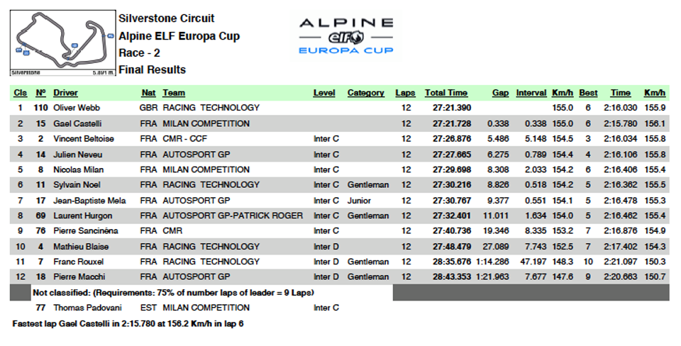 Oliver Webb (vainqueur courses 1 & 2) : « C’est un excellent week-end à domicile. J’adore Silverstone et c’était l’occasion de retrouver Alpine, Philippe Sinault et d’autres visages bien connus.Podium