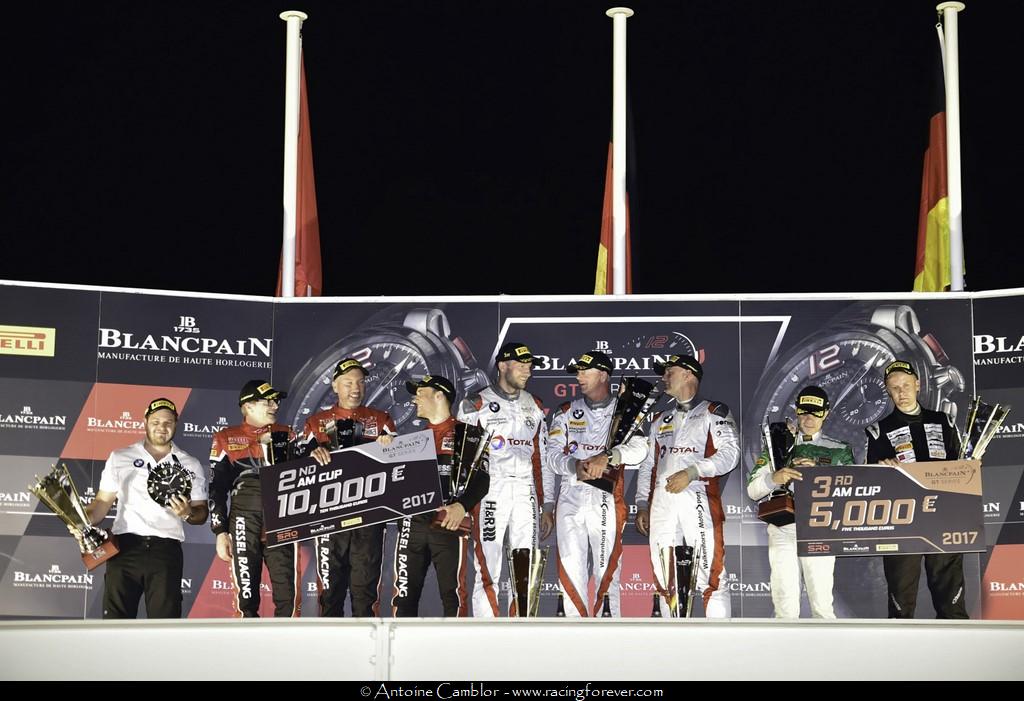 En Pro-Am, Keilwitz et Mattschull ont été les plus vites mais une infraction au réglement leur a coûté une pénalité. Heureusement pour eux sans conséquence sur leur victoire dans la catégorie. En Silver cup, les nouveaux champions, Jules Szymkowiak et Fabian Schiller (HTP Motorsport) sont revenu du diable vauvert pour passer du 31e range au 9e. Ils finissent de nouveau premier en Silver Cup. La Coupe Am est allée au # 888 Kessel Racing Ferrari avec Stephen Earle et David Perel.
