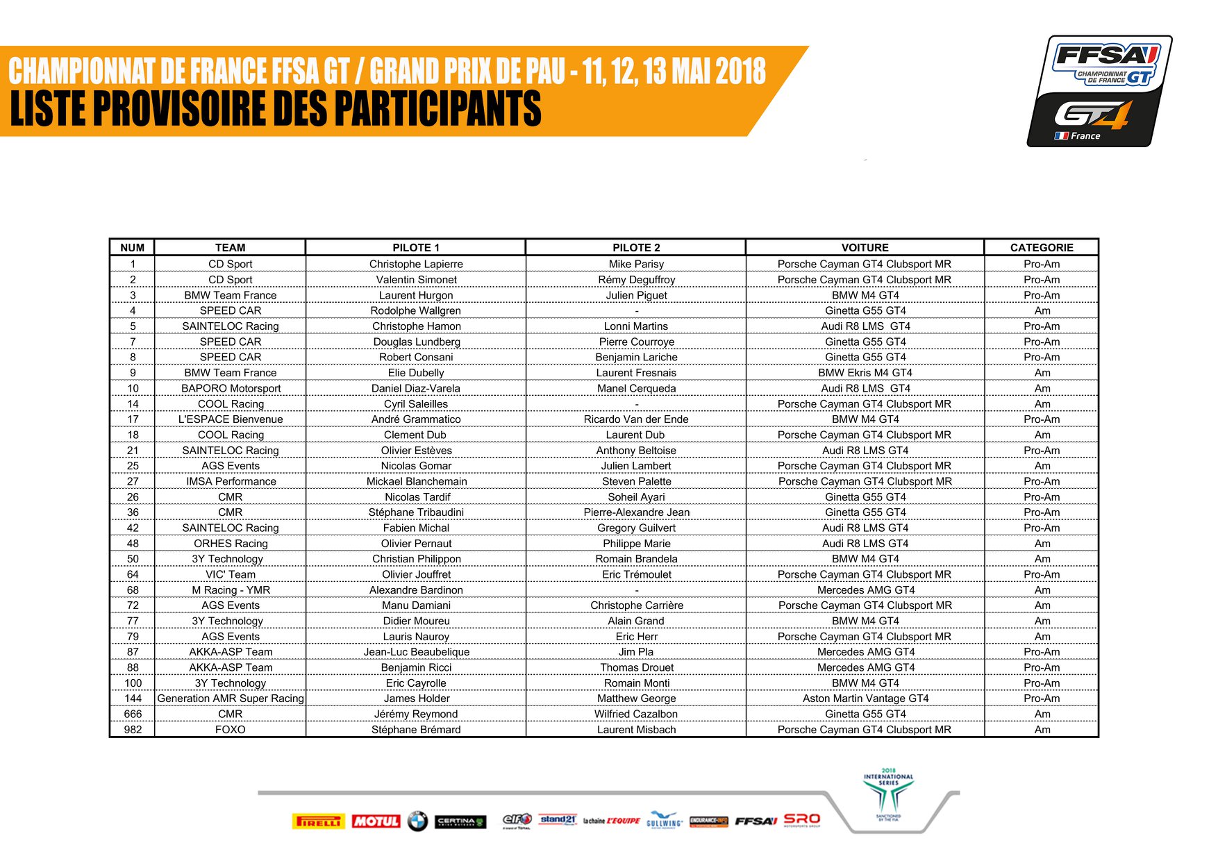 Champion l'an passé, Mike Parisy aura à coeur d'y briller comme beaucoup d'autres pilotes de très bon niveaux. Ginetta, BMW, Porsche, Audi, Mercedes et Aston Martin devraient être les marques qui composeront l'essentiel du plateau béarnais.