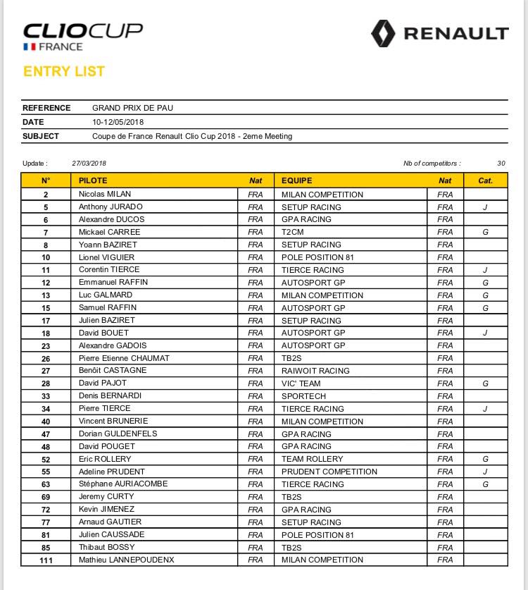 Renault aura encore la part belle à Pau avec 3 prestigieux plateaux allant de la Formule Renault version NEC à la Clio Cup et à la Twingo Cup qui sont 2 formules de promotions généralement très disputées.