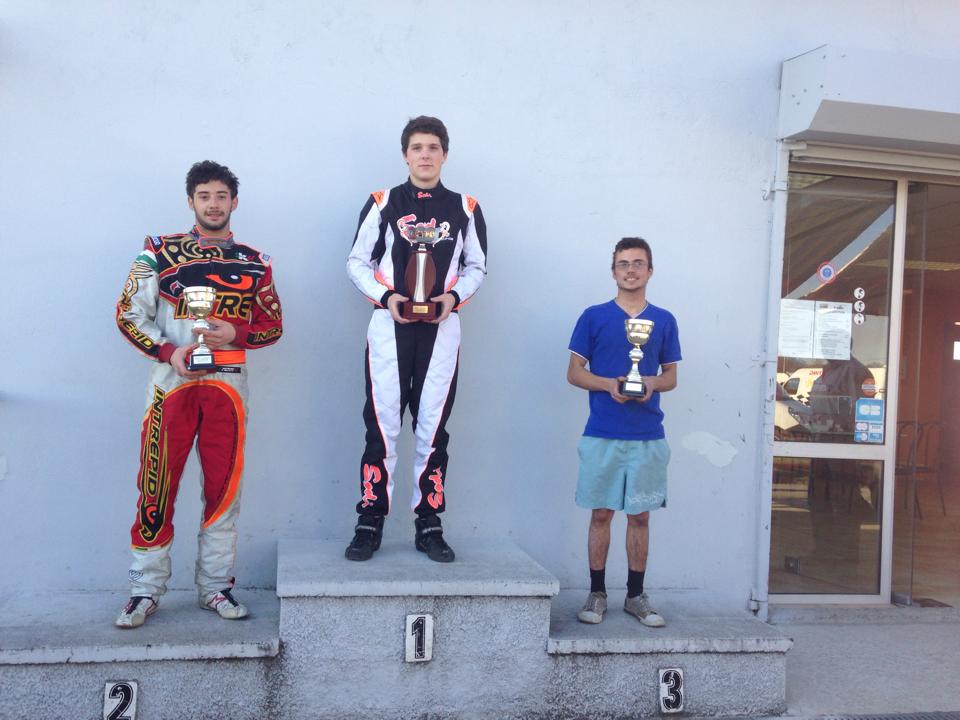 Et son week-end s’est parfaitement déroulé puisqu’il a dominé de la tête et des épaules sans jamais faire de fautes. Au final c’est une éclatante première victoire et une belle coupe qu’il obtient sur la plus haute marche du podium. Cela motive Pierre à continuer de travailler car le vrai objectif est de faire un excellent résultat au championnat de France KZ 125.