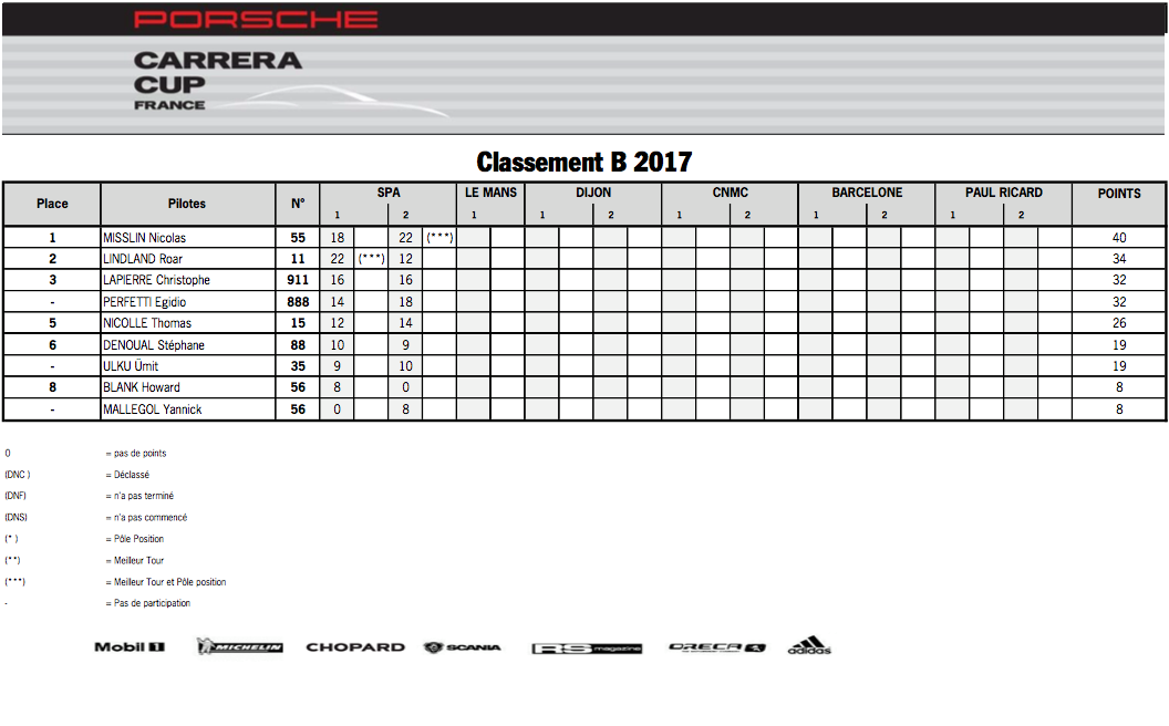 Fraîchement arrivé dans l'équipe Martinet by Alméras, Julien Andlauer a été intraitable sur le tracé belge en signant poles et 2 victoires. En classement B, Lindland et Misslin sont bien décidés à mettre fin à l'hégémonie de Christophe Lapierre chez les pilotes Gentlemens.